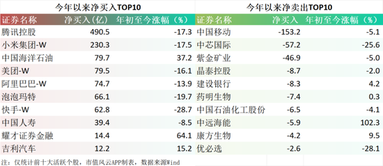 前十大活跃个股成交数据表示,腾讯和小米的净买金额断崖式杰出其它方向。