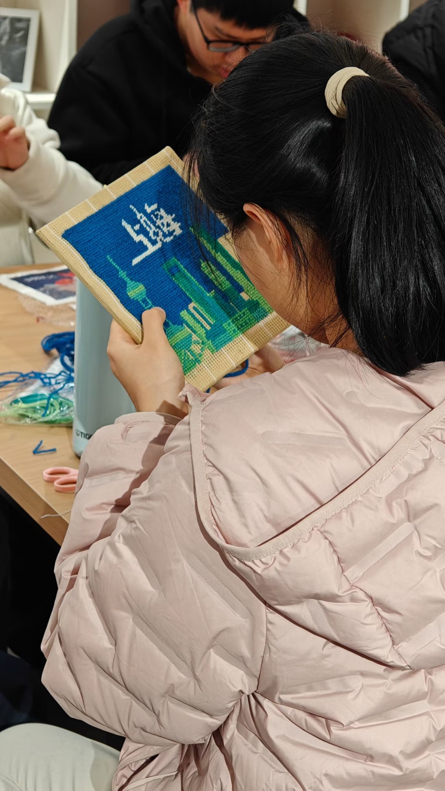 中学生体验上海绒绣。受访者提供