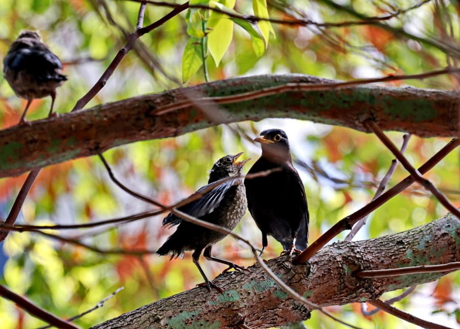春巢防御 | 近日,金山海丰路旁的大树上,乌鸫鸟正在为育雏忙绿着,一家在一都温馨又可儿 庄毅 摄