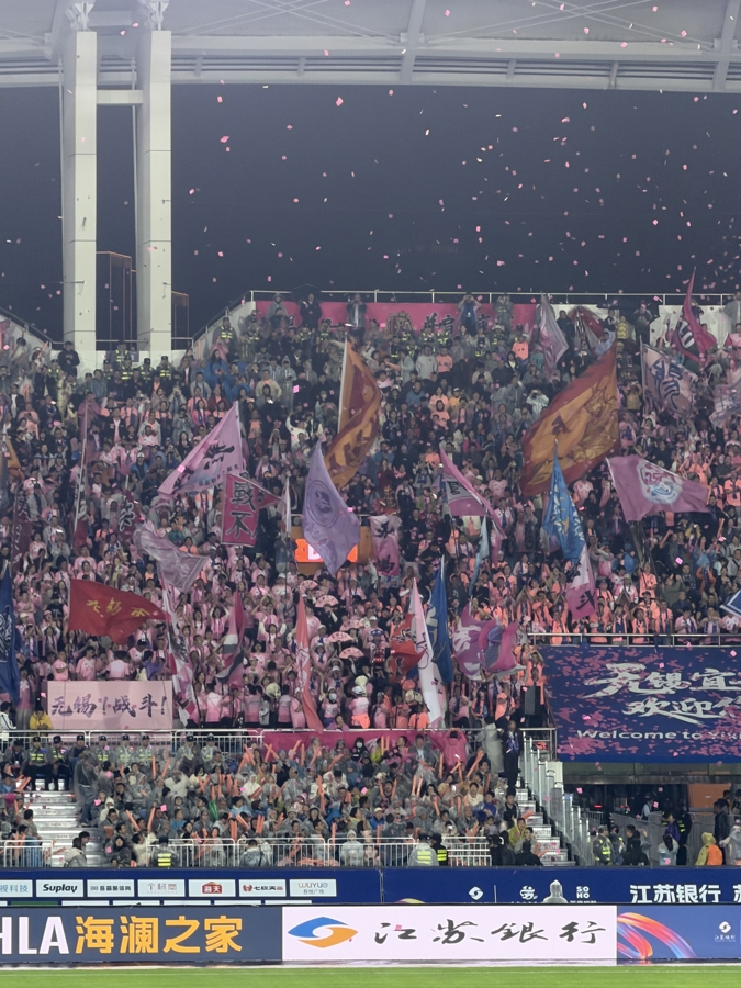 看台上,无锡球迷大定约构成粉色军团为球队加油捧场