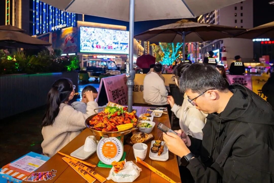 绿茵场内的兴趣滚热东说念主心,赛场以外的火食气,相通因苏超愈发浓烈。比赛当晚,位于无锡市滨湖区的湖滨买卖街内,3块巨型露天屏及时转播赛事,沿街40余家商户联动转播。买卖街东段的龙虾店内,门客们边品好意思食边不雅赛事,千里浸式感受赛场心扉。“咱们是挑升提前来占座,边吃龙虾边看球,氛围感涓滴不输赛场!”球迷费超振奋地说。
