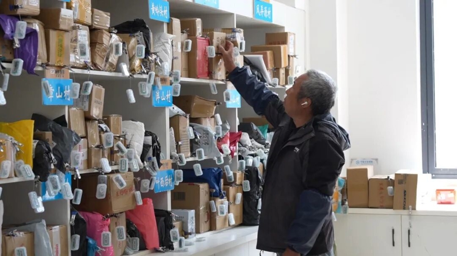 上昼9时,满载快递包裹的客货邮输送车辆驶入浙江松阳县裕溪乡裕溪村客货邮概括干事站,职责主说念主员熟识地将快递包裹卸下后,夹上指示灯条后摒弃对应的货架。