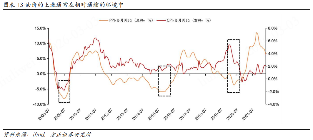 油价在低于80好意思元/桶时,概略对应两个典型时刻:2009年2月至2010年2月、2014年11月至2022年1月。