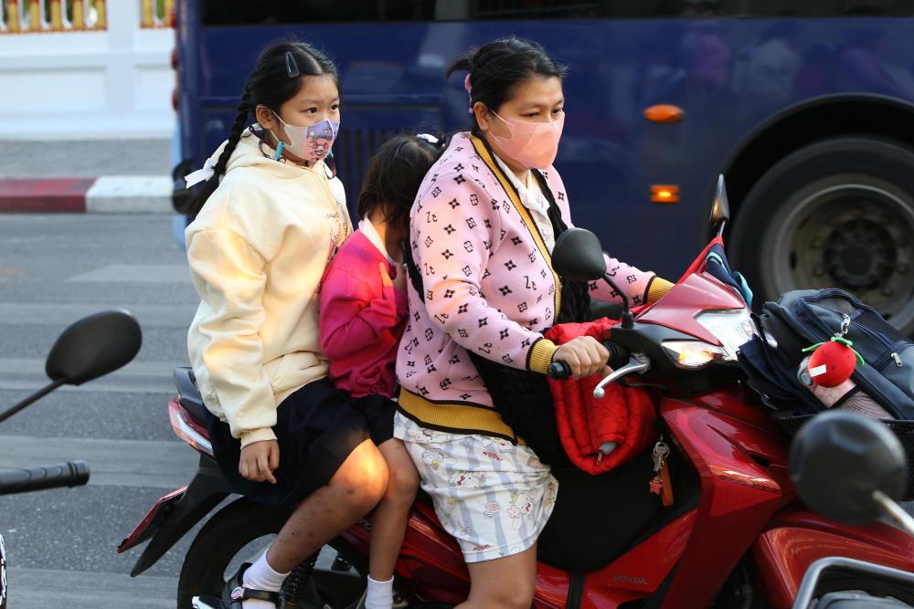 2025年1月13日,在泰国曼谷街头,学生们穿长袖上学。新华社发(拉亨摄)