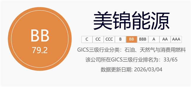 社会维度亮眼,包袱担当突显。华证指数2026年3月4日数据露馅,好意思锦动力举座评级为BB级,其中社会维度(S)获评A级,在65家GICS三级行业公司中排行第5。公司在东说念主力成本发展、职工热心、社会公益等方面的持续参加,既筑牢了企业发展的东说念主才根基,也以骨子举止践行了社会包袱,得回阛阓世俗认同。