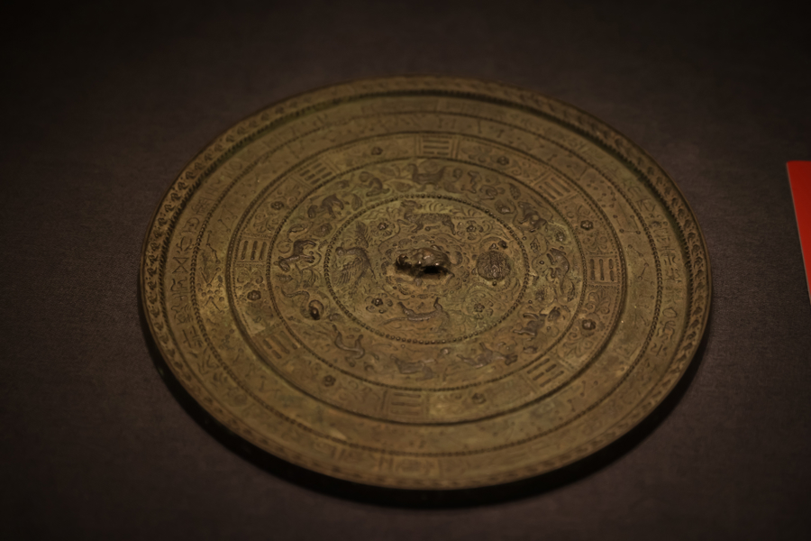 展览起首的第一件文物便是十二生肖八卦星斗铜镜,从外到内分别装饰篆书镜铭、二十八星宿图、八卦纹样、十二生肖以及四神纹样,彰显了生肖文化的重要性,也体现了古人的世界观和宇宙观。