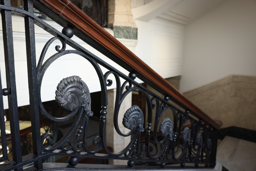 马在人类的生产、军事等方面产生了深刻久远的影响。它们在通衢大道与羊肠小道间承担运输重任,维系人类文明的交流网络;在沙场上冲锋陷阵,深刻影响战争史的进程;在欢声雷动的体育赛场上参与竞技表演,是运动健儿的亲密伙伴。本次展出的一对马头装饰物,诉说着上海市历史博物馆建筑的前身,是跑马总会大楼。这是楼梯栏杆的装饰构件,至今在馆内随处可见。它们除了美观外,还有实用价值。稍加注意不难发现,楼梯每一级台阶左右都有一个圆形小环,有一根根横向的金属压杆串联在两端的马头装饰物里,使大理石楼梯上铺设的地毯平整、不会滑落。
