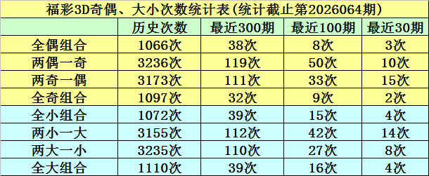 开奖转头:福彩3D第2026064期奖号为604。奖号步地为组六,大小步地为大小小,奇偶步地为偶偶偶,和值为10,跨度为6。