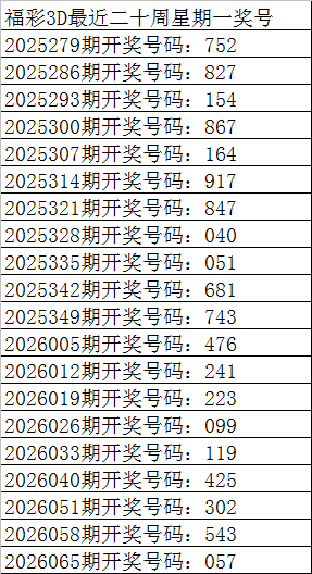 上期转头:福彩3D第2026071期奖号为:261,其中奖号组选类型为:组六,奇偶比为1:2,大小比为1:2,012路比为1:1:1,和值为9,跨度为5。